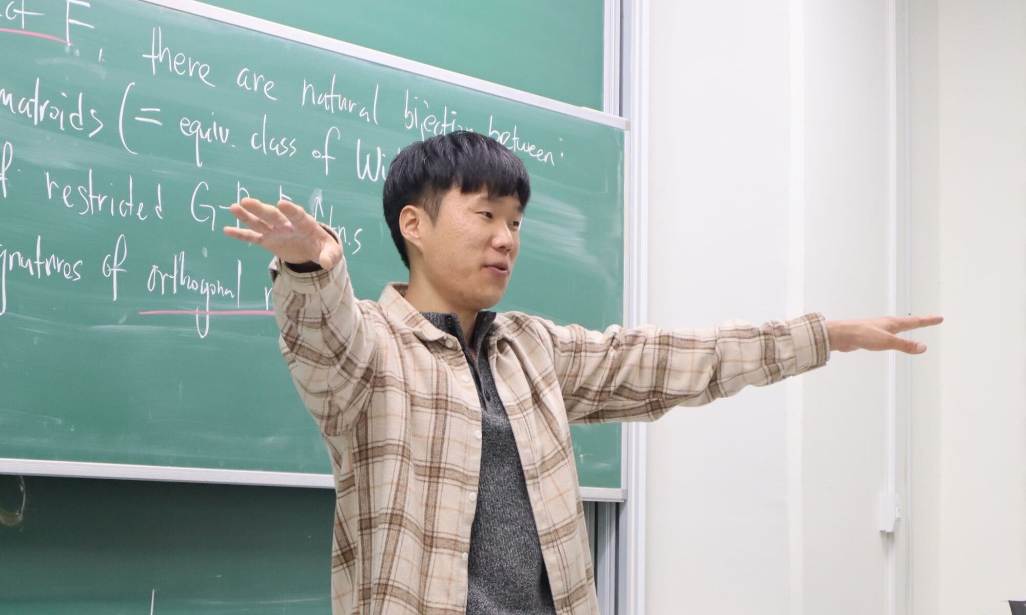 On December 26, 2025, Donggyu Kim (김동규) from the Georgia Institute of Technology gave a talk at the Discrete Math Seminar on defining orthogonal matroids (even delta-matroids) with coefficients in terms of Grassmann-Plücker functions. The title of his talk was “Grassmann-Plücker functions for orthogonal matroids“.
