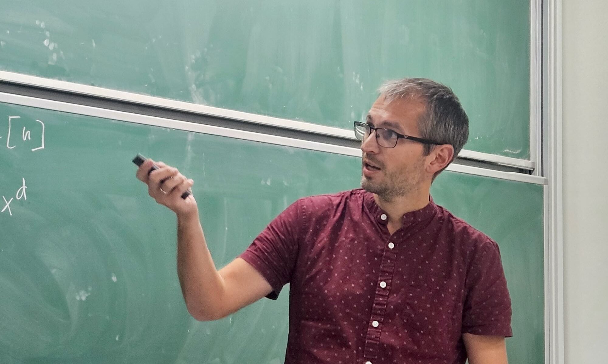 On November 25, 2025, Péter Pál Pach from the Budapest University of Technology and Economics gave a talk at the Discrete Math Seminar on the maximum set of positive integers that avoids having any product of k elements equal to a d-th power. The title of his talk was “Product representation of perfect cubes“.