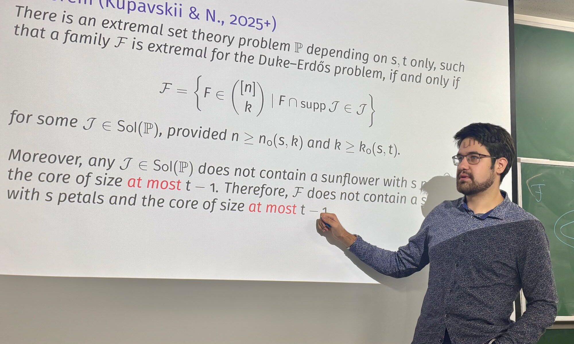 Fedor Noskov gave a talk on hypergraph Turán-type problems and their connection to extremal set theory problems at the Discrete Math Seminar